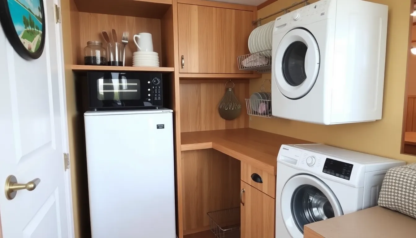 Space efficiency stands out as a primary benefit of tiny home appliances. Compact designs allow for seamless integration into small areas. Products such as mini-fridges and stackable washers save valuable floor space. Wall-mounted dish racks and under-cabinet coffee makers maximize storage while keeping essentials accessible. Versatile options enable users to maintain organization without clutter. Customization options further enhance the adaptability of these appliances, allowing them to fit specific needs.